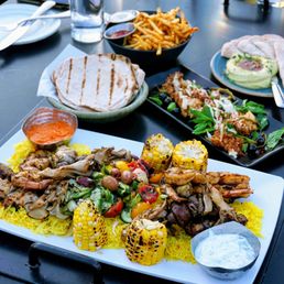 I came here for happy hour with a friend. We were able to make a last minute reservation which was nice. We were seated outside and the views were so pretty. You could see over Lake Union and the Seattle skyline. I highly recommend visiting here for the views. The happy hour menu was only 4 drinks and no food, which was a little disappointing. I was hoping they would have more options for happy hour. We ended up getting espresso martinis and ordering the sampling platter and falafels. The sampling platter was so pretty and tasted really good. I liked being able to try all the things with pita. The falafel was also good. I really enjoyed the sauce it came with. The wind started gusting super hard which blew over glasses. Luckily the staff was able to reseat us inside their dining room, which still had a really good view. They were very professional about it.